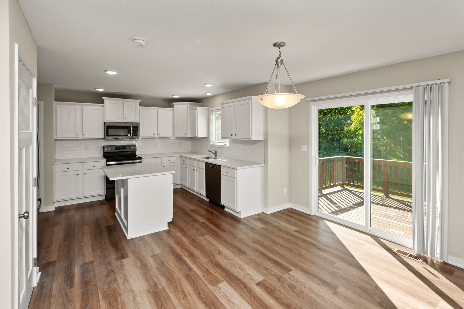 This beautiful 1,800 sq. ft. home offers the perfect blend of warmth, comfort, and modern design. The spacious eat-in kitchen is a true highlight, featuring quartz countertops, a breakfast bar, and stainless steel appliances—making it an inviting space to cook, gather, and share meals. The open layout flows into a bright great room with a cozy gas fireplace and a built-in component shelf, creating the perfect place to relax or entertain. With three comfortable bedrooms and two and a half bathrooms, there’s plenty of room for everyone to feel at home. Enjoy evenings on the deck overlooking the fully sodded yard, or take advantage of the three-car attached garage for convenience and extra storage. You’ll love coming home to this beautiful space that combines modern touches with everyday comfort.
